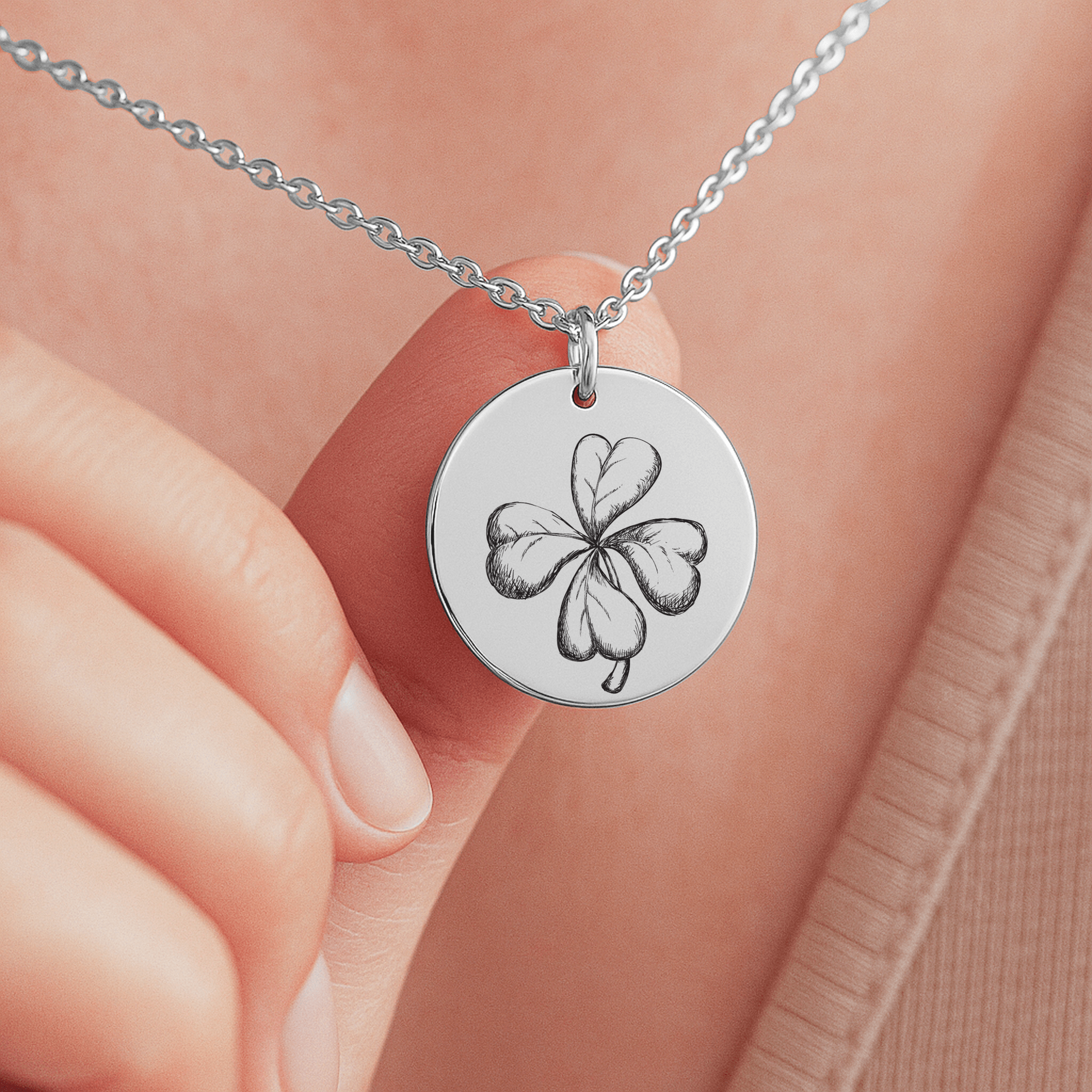 Der filigran gravierte vierblättrige Klee symbolisiert Seltenheit und Glück – wie das Herz Deiner Enkelin. Auf Wunsch kannst Du die Rückseite personalisieren mit einem Namen, einem Datum oder einem kurzen Liebesspruch.